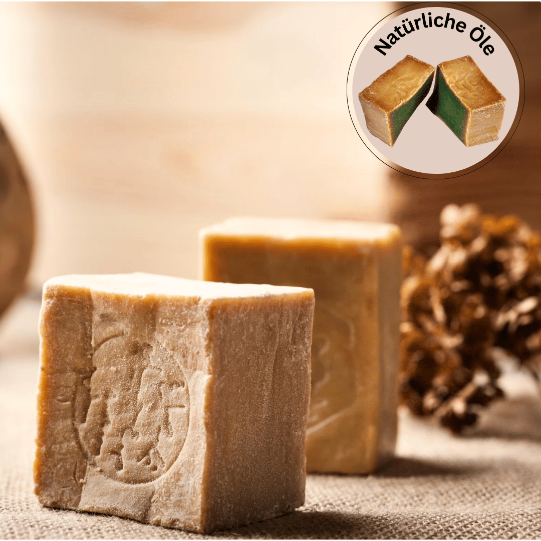 Unsere Aleppo-Seife wird traditionell in Syrien hergestellt – aus hochwertigem Olivenöl und Lorbeeröl, ganz ohne Zusatzstoffe.